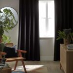 Sleek black blackout curtains, providing complete light blockage, privacy, and a bold, contemporary look that enhances any room.